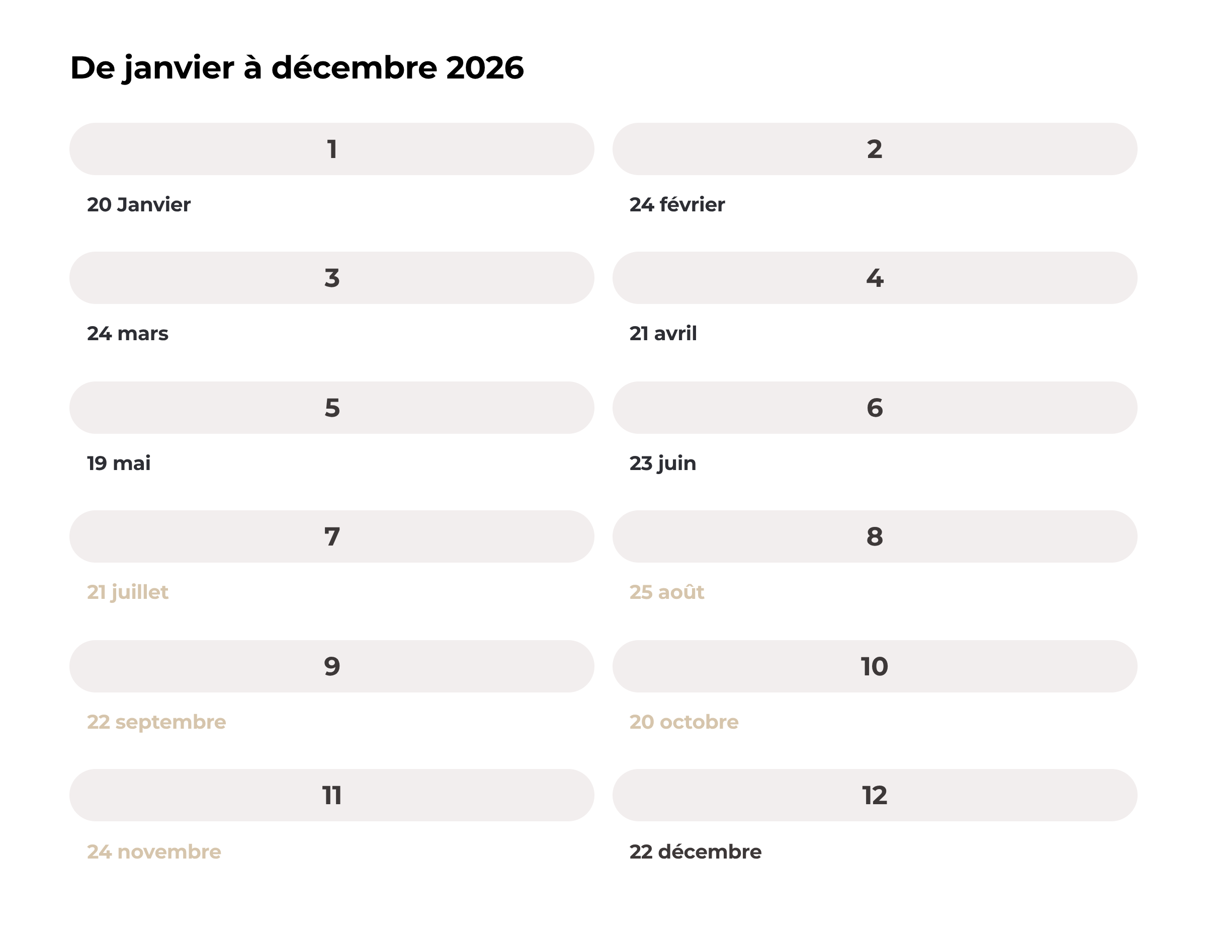 Dates des groupes - Les mardis :