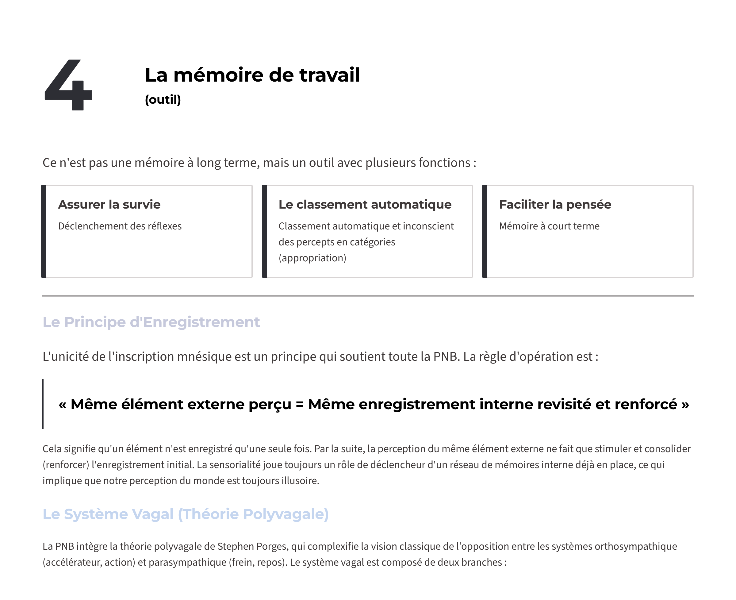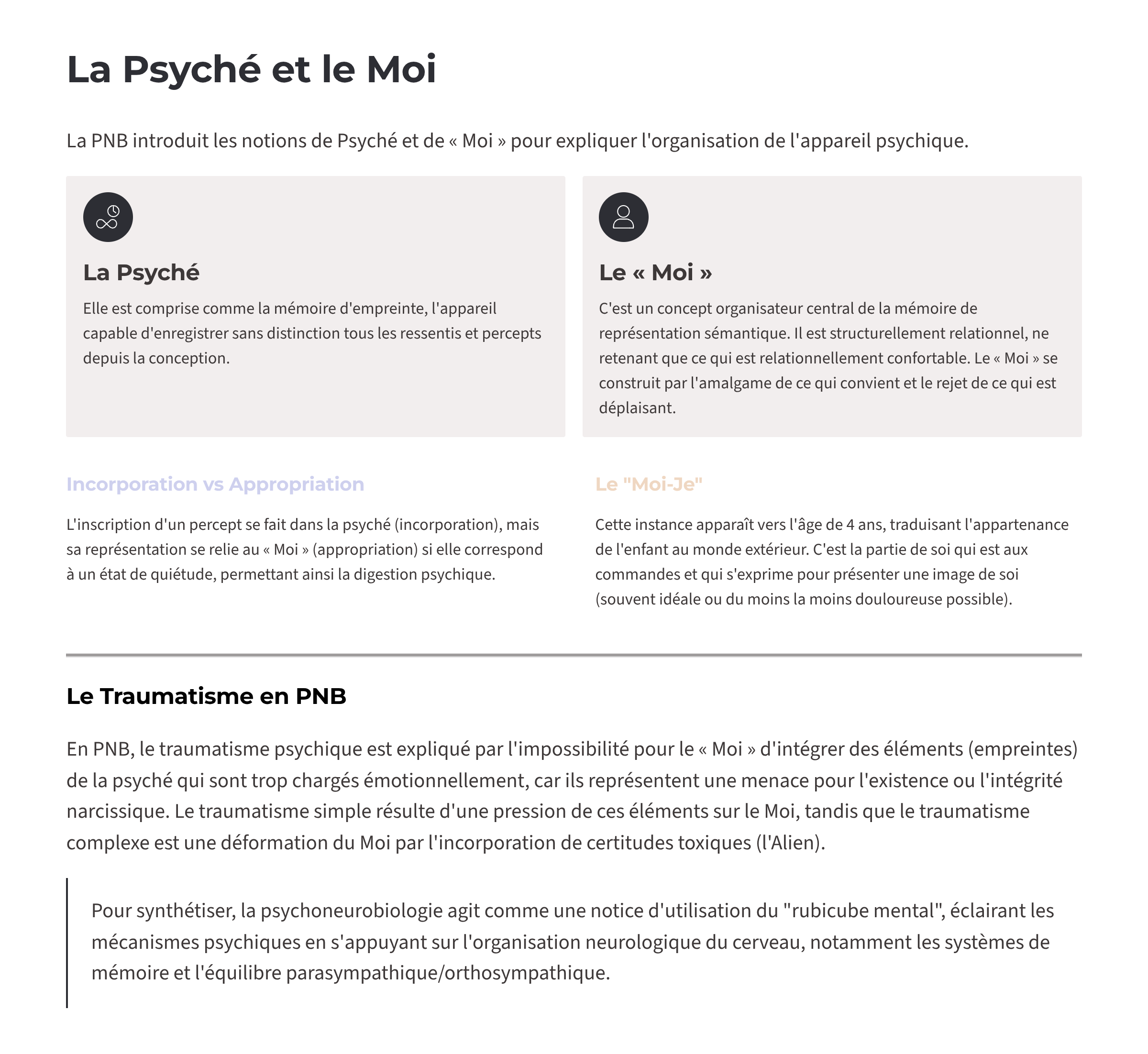 • Lien avec l'EMDR : Née d’un constat empirique, la PNB fournit à l’EMDR l’assise théorique solide qui lui est nécessaire.